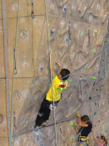 Dans la foulée, les benjamins attaquent les voies de difficulté. Chacun d’eux réalise une bonne prestation avec une excellente 5 ème place pour LILOU qui sort ses deux premières voies et une solide 8ème place pour JOSIG.