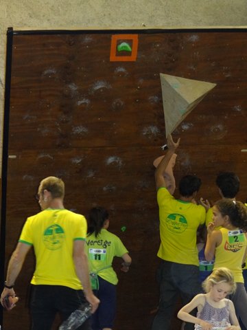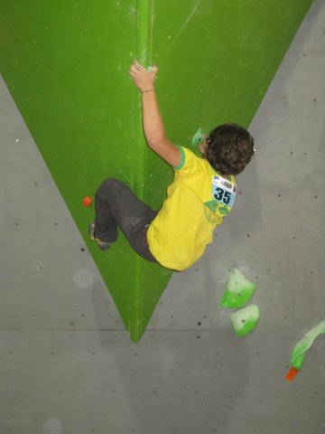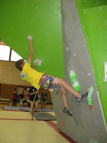 La discipline du bloc convient mieux à nos benjamins mais la tension monte d’un cran à ce stade de la compétition. JOSIG et LILOU se crispent un peu trop et ne grimpent pas à leur niveau dans un circuit physique et soutenu de 6 passages. Nos deux compères échouent de peu dans deux blocs. JOSIG avec deux blocs réussis se classe 10ème et LILOU avec trois blocs à son actif décroche la 8ème place.