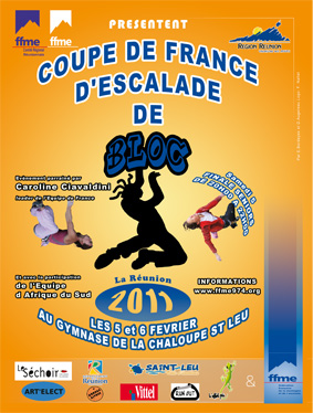 Les 05 et 06 février 2011, se déroulera pour la 3ème année consécutive, la seconde étape sur les quatre de la Coupe de France d’escalade de bloc au gymnase V PHALARIS de la Chaloupe Saint Leu.