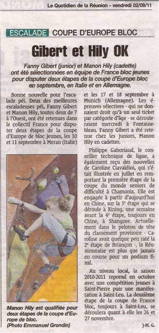 Elles sont sélectionnées en équipe de France jeune de BLOC pour les Coupes d’Europe de Meran et Munich. (10/11 et 17/18 septembre) …