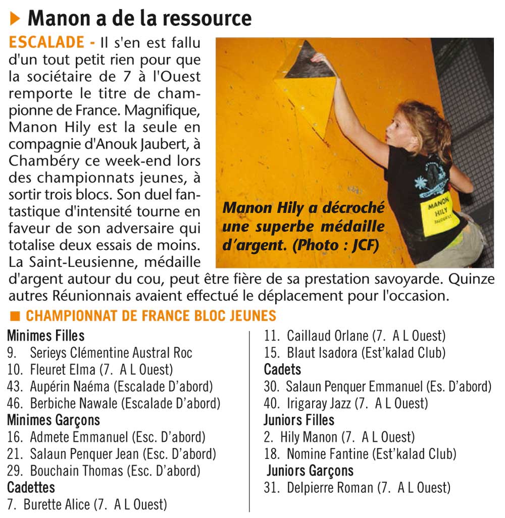 MANON HILY – Vice-Championne de France jeune de Bloc 2013