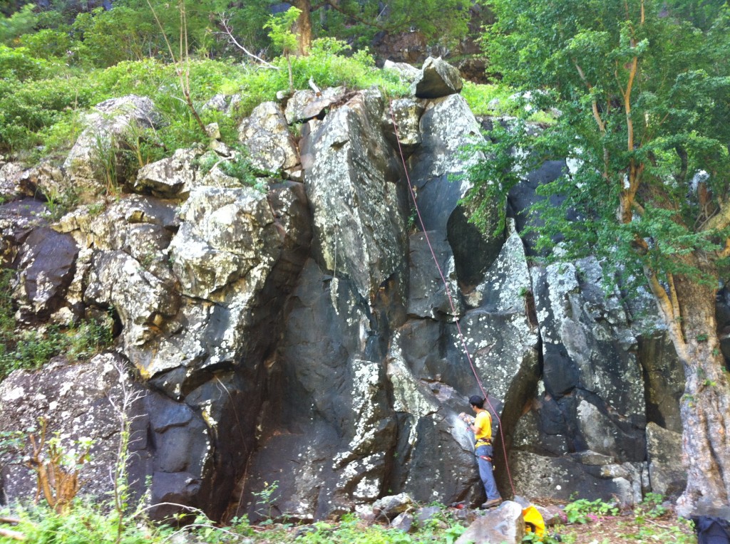 Une toute petite barre rocheuse vient d’être équipée par Giulio Cavalieri. Le cadre est vraiment sympa pour un picnic familial avec un bassin permettant la baignade pour les marmailles.Quand vous prenez le tour des Roches par le sud, vous dépassez la pharmacie des Roches, puis vous vous garez juste après la première ravine (ravine Divon). Elle est facilement reconnaissable avec une passerelle pour piéton et plein de vieux manguiers. Ensuite vous n’avez qu’à remonter le long de la ravine pendant 5mn sur un chemin plat et entretenu.