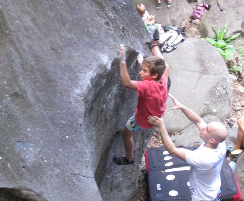 Plus que deux entraînements sur place avant le départ des cinq petits grimpeurs sélectionnés pour participer au Trophée National Poussin et Benjamin 2013, la compétition nationale de référence qui rassemblera les meilleurs français de ces catégories d’âge à Saint Michel de Maurienne en Savoie le 06 juillet prochain. Il s’agit d’une compétition regroupant les trois disciplines compétitives de l’escalade : la vitesse, le bloc, et la difficulté.