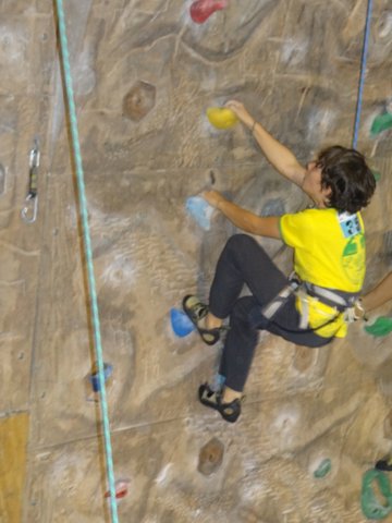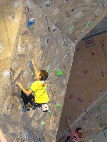 Dans la foulée, les benjamins attaquent les voies de difficulté. Chacun d’eux réalise une bonne prestation avec une excellente 5 ème place pour LILOU qui sort ses deux premières voies et une solide 8ème place pour JOSIG.