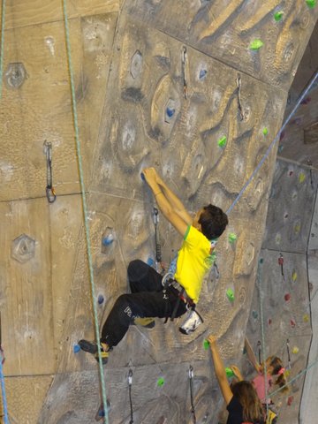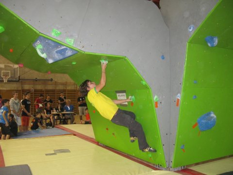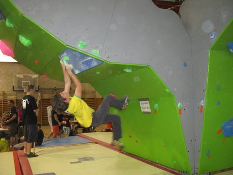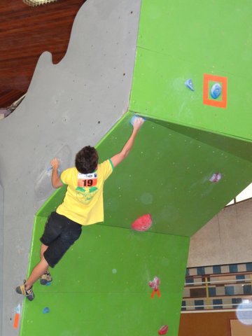 La discipline du bloc convient mieux à nos benjamins mais la tension monte d’un cran à ce stade de la compétition. JOSIG et LILOU se crispent un peu trop et ne grimpent pas à leur niveau dans un circuit physique et soutenu de 6 passages. Nos deux compères échouent de peu dans deux blocs. JOSIG avec deux blocs réussis se classe 10ème et LILOU avec trois blocs à son actif décroche la 8ème place.