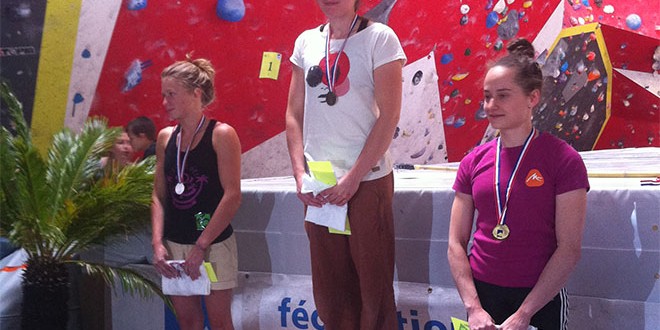 Manon Hily (7alouest) remporte la médaille d’or au classement général de la Coupe de France de Bloc 2014 en sénior, suivi de près par Fanny Gibert (7alouest) qui finit à la seconde place.