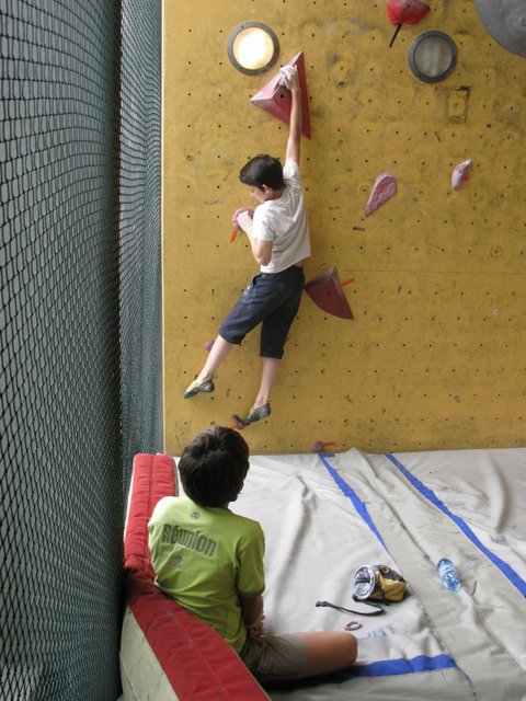 Les épreuves s’enchaînent sans temps mort, de nombreux parents et grand parents sont là et encouragent nos petits réunionnais. Kintana ne peut concrétiser tout son potentiel à la vitesse mais elle termine quand même à la 5ème place. Titouan met ses nerfs à rude épreuve dans le contest de bloc : il arrache une 4ème place avec 6 blocs réussis dont un qui ne sera réalisé que deux fois chez les poussins.