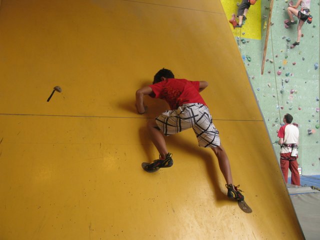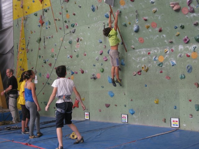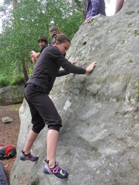 Après les deux premières épreuves, Kintana enchaîne ses trois voies de difficulté avec aisance : elle est première de cette épreuve et recolle au peloton de tête pour le classement général. Les poussins aussi s’attaquent aux voies de difficulté ; Titouan est à une prise du top de la voie 3 et prend la 3ème place.