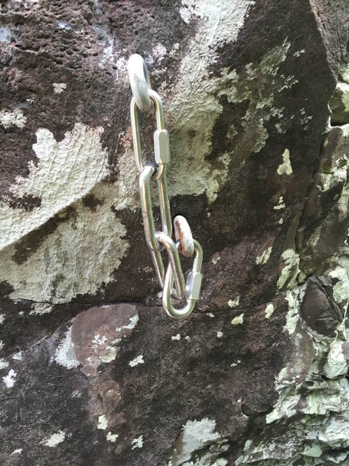 De plus une voie a été équipée à gauche de « Dewalt la pente » sans l’aval du Comité, par un équipeur inconnu. Il est donc aussi déconseillé de la grimper tant que cette voie n’aura pas été rééquipée ou supprimée. Elle a été équipé avec des goujons galva qui sont déjà corrodés.