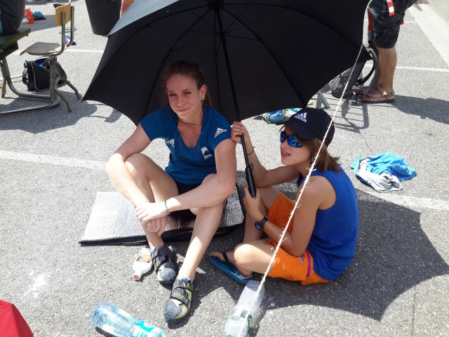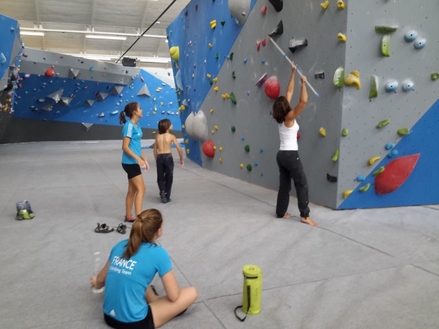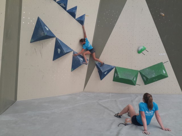 Après une semaine de stage de préparation à Fontainebleau avec Philippe GABORIAUD, Elma FLEURET (7alouest) et Solène MOREAU (Austral Roc) ont rejoint l’équipe de France jeune de bloc pour disputer la Coupe d’Europe Jeunes de bloc 2016 de l’Argentière le 27 juillet 2016.