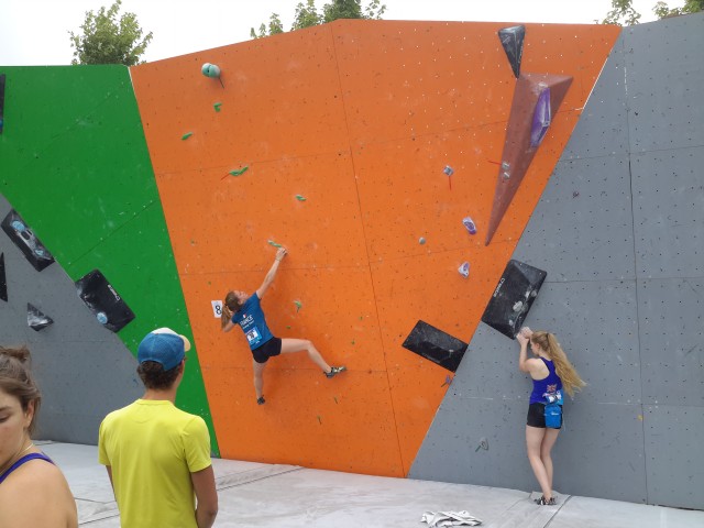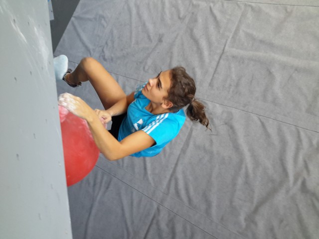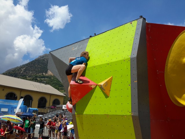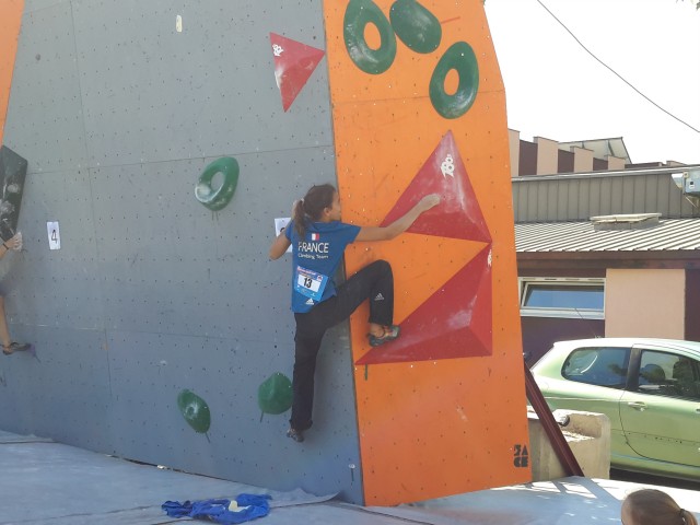 Elma est donc de retour au bloc (entre deux épreuves de vitesse) et se classe à une bonne 10ème place en cadette, ce qui la qualifie pour les Championnats d’Europe jeune de bloc où elle ne pourra se rendre afin d’axer sa préparation sur la vitesse à l’occasion de sa sélection au Championnat du Monde senior de Paris 2016.