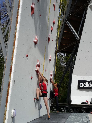 Il étaient trois candidats à se confronter à la voie du record de 15m montée en deux parties sur le mur de 10m du Tampon. Chacun d’eux a réalisé 8 tentatives pour tenter d’accrocher les minimas fixés pour les deux parties qui composent la voie de vitesse officielle. Téo fait preuve d’une grande régularité et accroche les minimas à 7 reprises dans la 1ère partie (meilleur temps 5sec 83) puis 7 fois de suite dans la deuxième partie (meilleur temps 4sec 02). Loic descend sous les minimas à 4 reprises (05sec 08 pour son meilleur temps) dans la première partie, puis à 5 reprises dans la deuxième partie (avec un très bon 3sec 88). Thomas ne cesse d’améliorer ses temps et passe sous la barre des minimas de la deuxième partie à son 5ème run (3sec 80) puis se rapproche toujours plus près de la barre fatidique des 5 secondes dans la première partie, synonyme de qualification: 5’sec 96 à sa première marque, puis une chute, puis 5sec 60, puis un faux départ signalé par le boitier du pad de départ, puis 5sec 49 puis 5sec 32… Malgré les encouragements des parents des entraîneurs et des jeunes du groupes compétition d’ Austral Roc la dernière marque reste identique à la précédente 5sec 32 soit 32 centièmes de trop! Thomas ne fera partie de l’Equipe Régionale pour cette fois ci mais il démontre d’incroyables capacités pour cette discipline sans avoir la possibilité de s’entraîner sur la voie officielle du record.