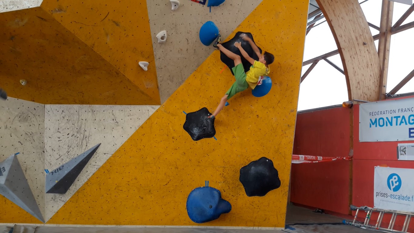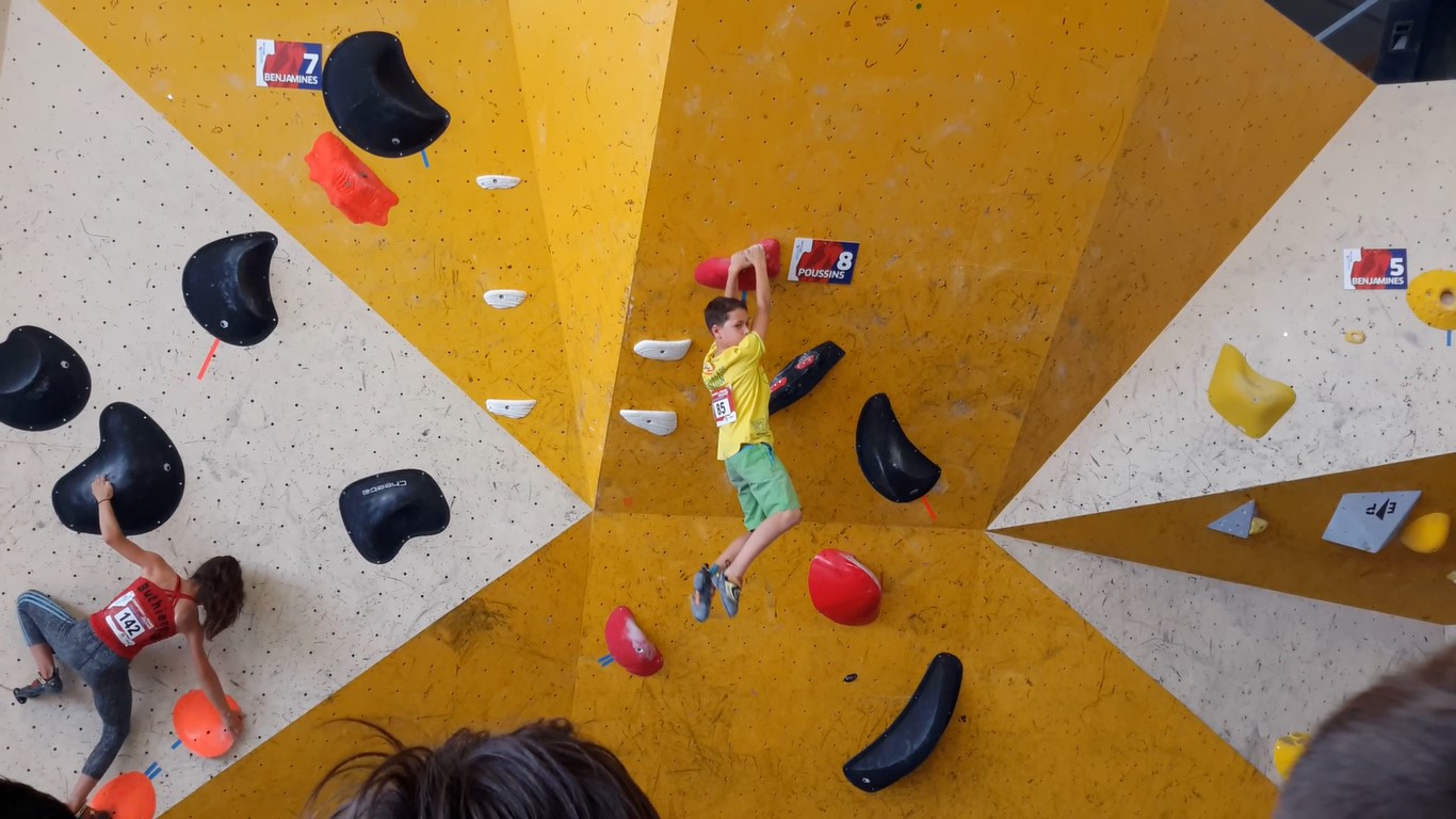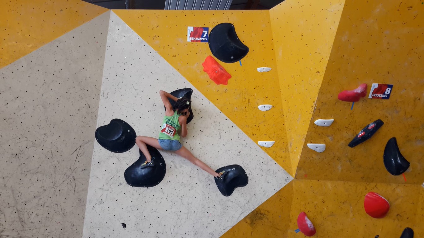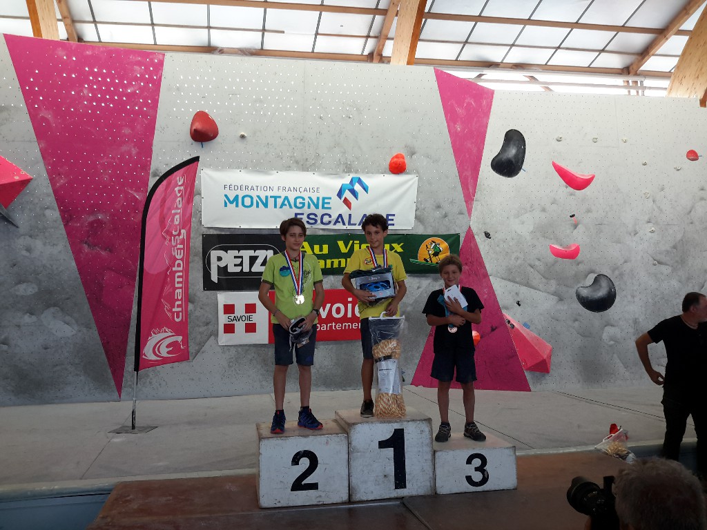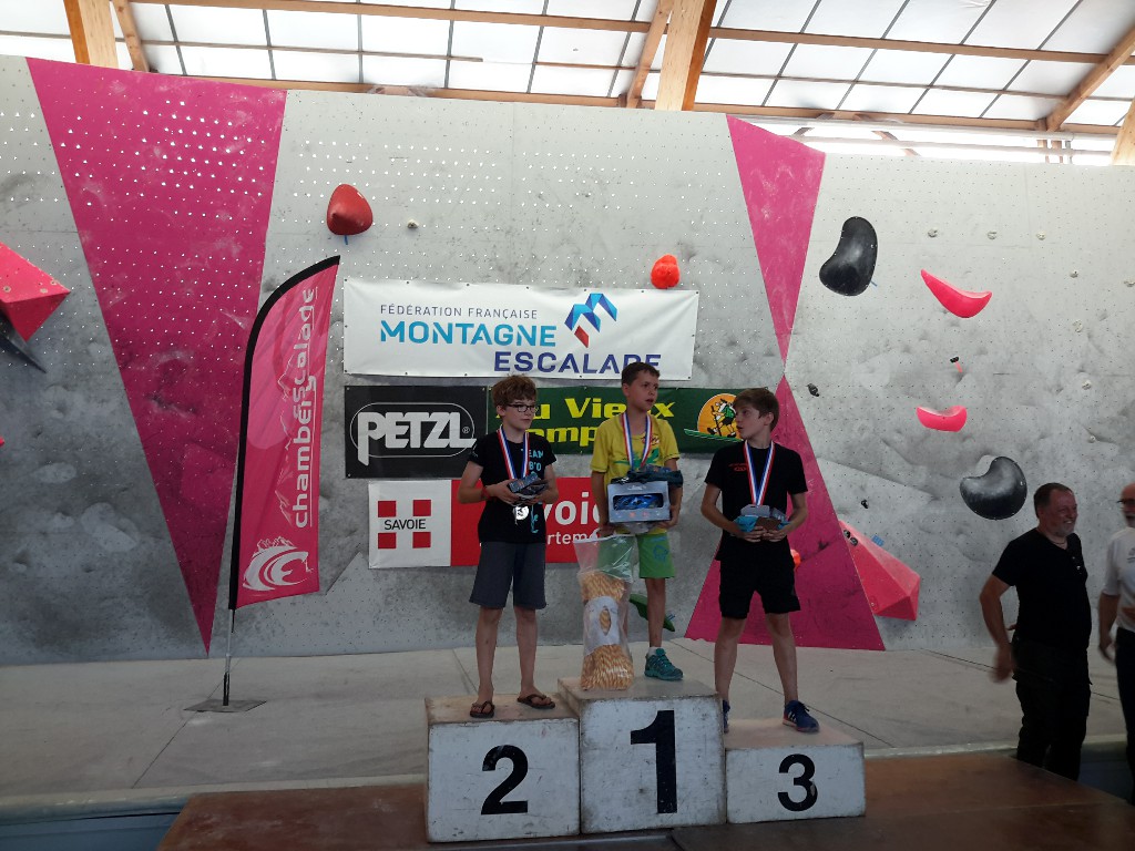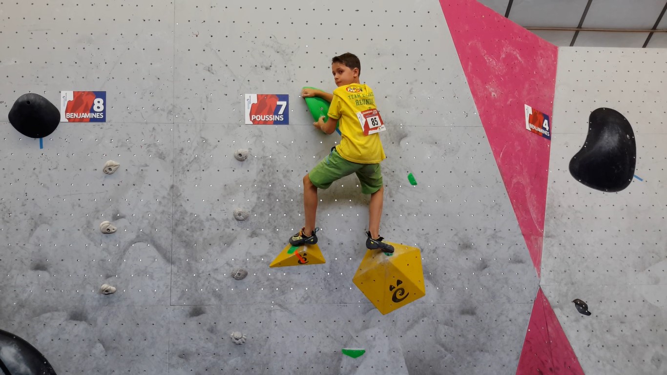 Marius PAYET-GABORIAUD (Austral Roc) remporte le titre de vice-champion de France en benjamin. En fin de la première journée, il passe dans les derniers concurrents et fait preuve d’une belle maîtrise malgré la très forte chaleur en s’octroyant la troisième place de l’épreuve de difficulté. Premier de l’épreuve de vitesse du dimanche matin, Marius se retrouve en tête du classement provisoire avant la dernière épreuve, talonné par son copain Sam à la deuxième place. Bien que réalisant le bloc le plus dur du contest en seulement deux essais, il ne termine que 7ème de cette épreuve.