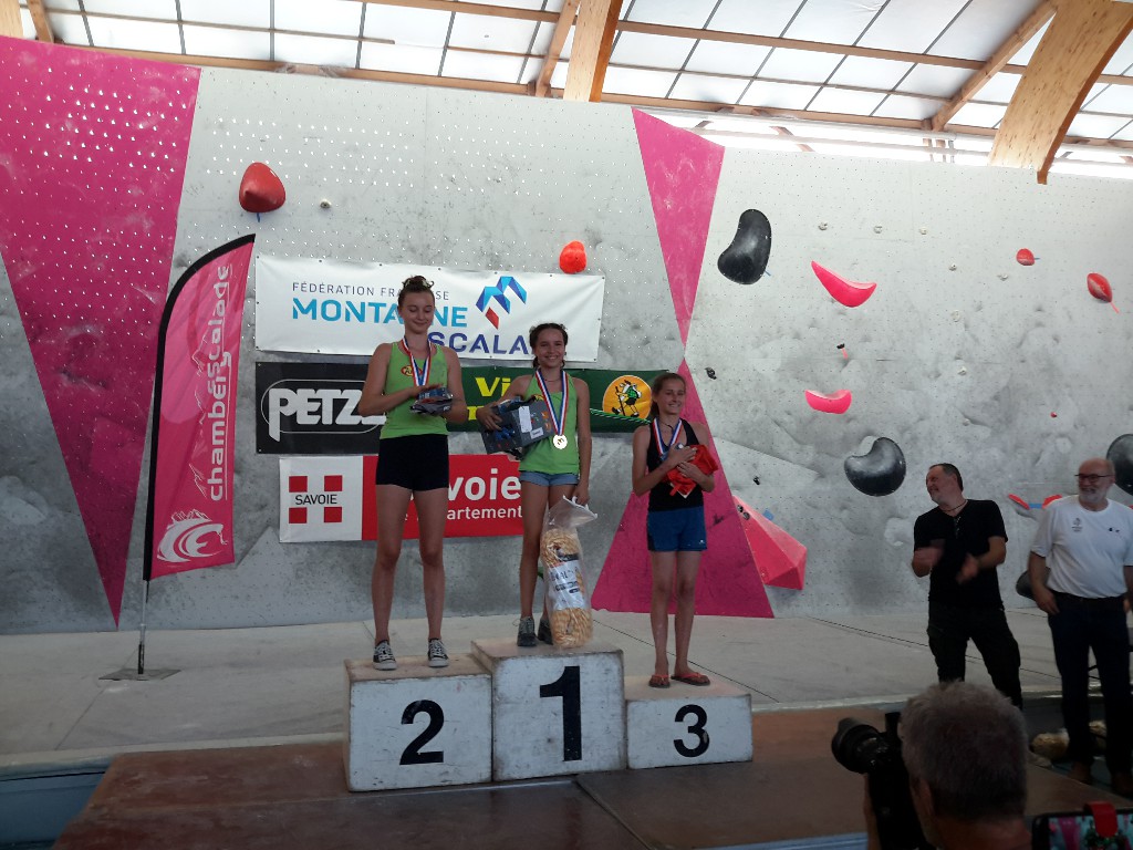 Margot BERTONE (club 7A l’ouest) remporte le titre de vice-championne de France en benjamine. Combative et concentrée elle tire son épingle du jeu par sa régularité sur les trois épreuves. 6ème en difficulté, Margot consolide son classement avec la 5ème place de l’épreuve du bloc et distance ses concurrentes grâce à une très bonne troisième place sur la vitesse.
