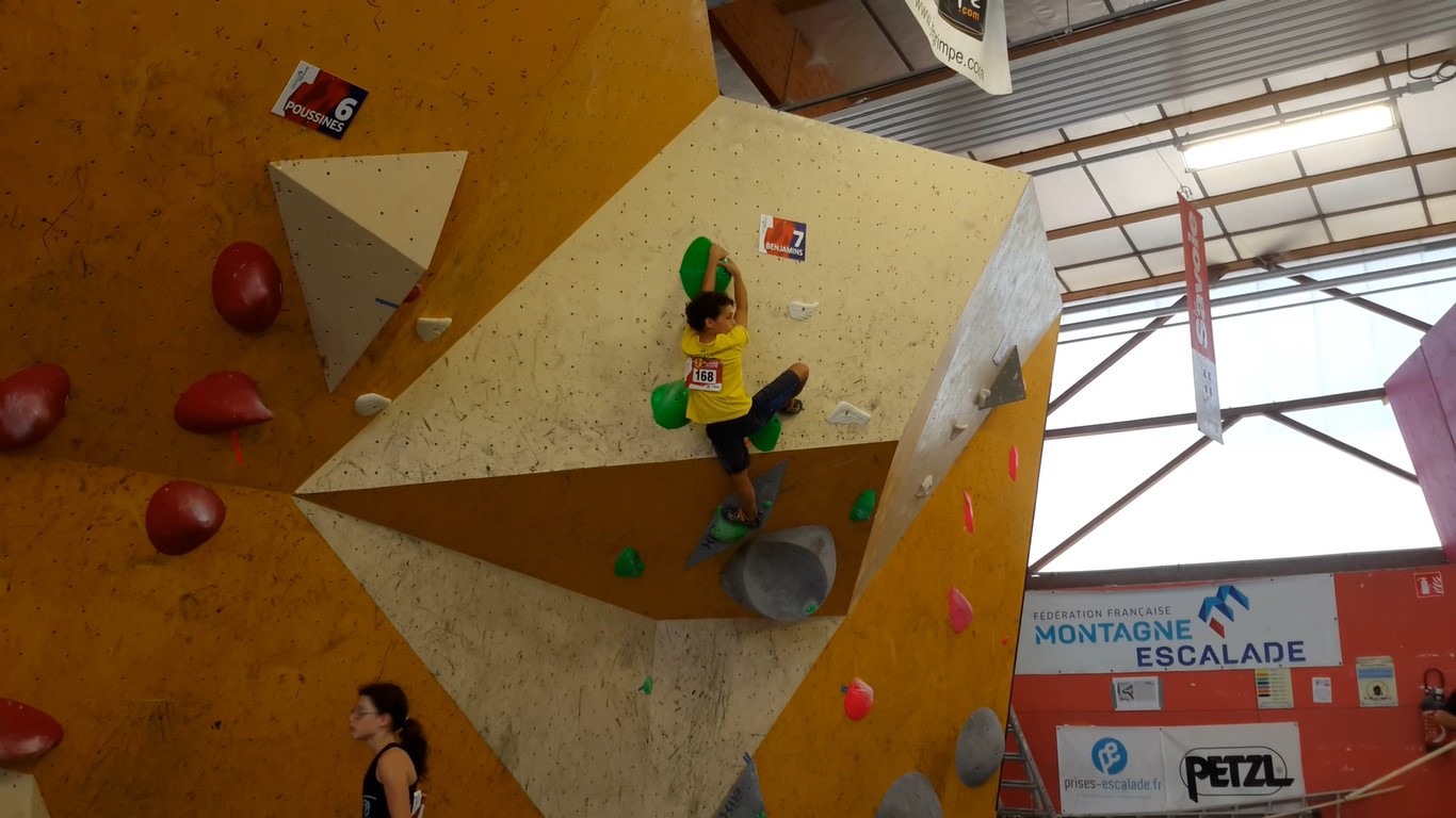Max BERTONE (club 7A l’ouest) remporte le titre haut la main en poussin. Max sort toutes les voies de difficulté avec facilité puis réalise le meilleur score en bloc avec 7 blocs en seulement 8 essais et enfonce le clou en s’octroyant les meilleurs chronos sur la voie de vitesse: (presque) une balade de santé !