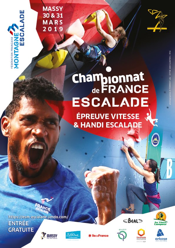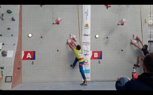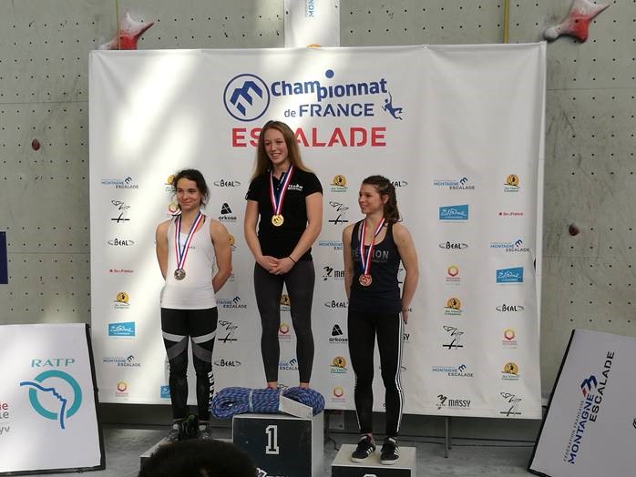 Félicitations aussi à Iliann CHERIF du club Austral Roc qui remporte le titre de Champion de France de vitesse en cadet, et bât le record de France de vitesse dans la mème catégorie avec un temps de 6,96 secondes. On le retrouvera aussi en bleu pour cette saison de vitesse 2019