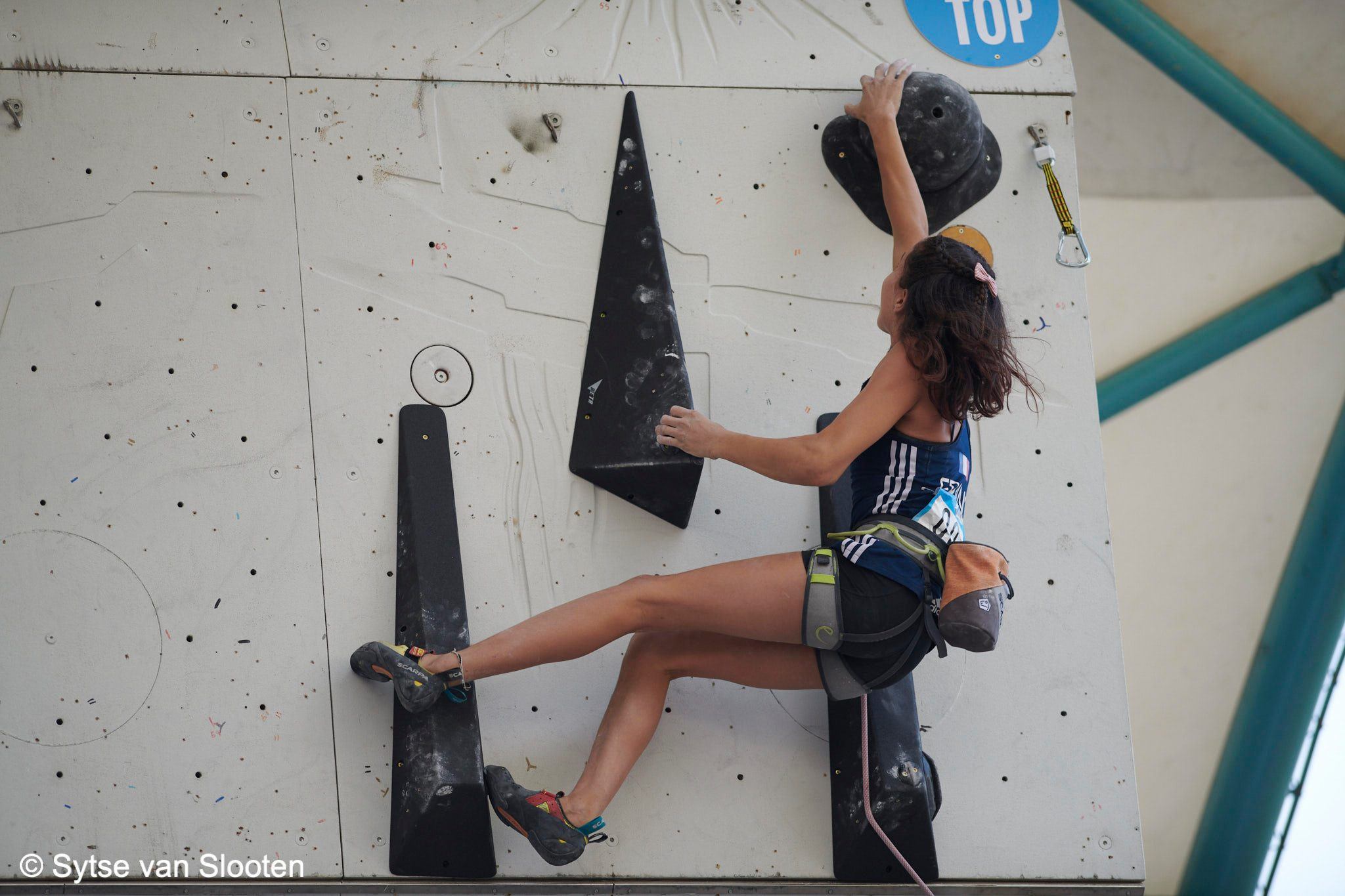 Après une remarquable entrée dans son tout premier Championnat du Monde, Oriane BERTONE, qui n’est que minime 1ère année, survole la demi finale en étant la seule à réussir la voie.