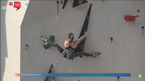 Kintana ILTIS (Austral Roc), présente elle aussi en finale chez les cadettes termine 8ème. Une petite hésitation sur un gros blocage à mi parcours aura raison de sa détermination.
