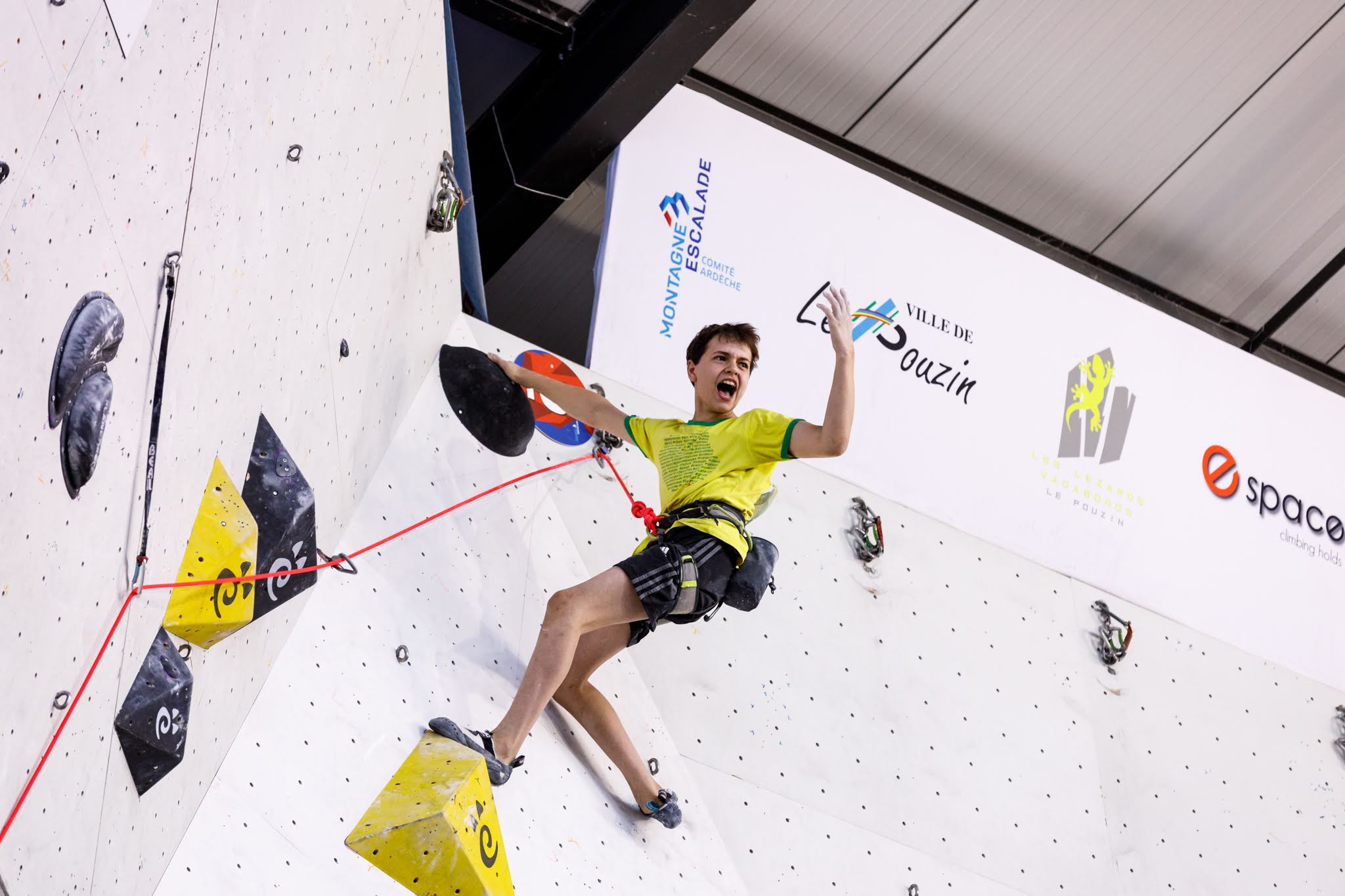 En remportant et topant sa voie de demi-finale, son camarade de club et du Pôle Espoir, Sam POULLAIN, s’élance en finale avec l’étiquette de favori. Il monte très haut dans cette voie très exigeante et distance ses adversaires pour s’offrir avec brio le titre de champion de France U18, trois ans après sa 2e place en U16 et quatre ans après son titre en U14. Ce titre lui ouvre à nouveau la porte à l’équipe de France, avec un billet pour la Coupe d’Europe d’Ostermundigen. Premier des qualifications et 2e des demi-finales, Max tient son rang et s’offre son premier titre de champion de France (U16) après ses 3 titres obtenus en U12 et U14. Le Réunionnais est d’ailleurs le seul grimpeur à enchainer sa voie de finale, toutes catégories confondues.