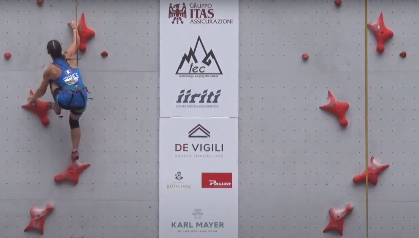 En U18, Louise FONTAINE (Est’Kalad Club), qui découvrait également le circuit international, est la première non qualifiée (9e), mais améliore son record (9’’49). Plus expérimentée, Manon LEBON (Austral Roc) se hisse en finale. La tamponnaise survole chaque tour de la compétition, elle élimine toutes ses adversaires et remporte sa deuxième victoire internationale chez les jeunes.