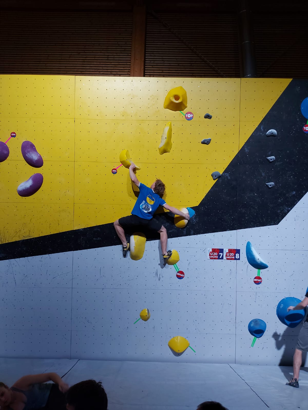 En U20, Louis FECHOZ, deuxième des qualifications se hisse également en finale. En ne parvenant à résoudre qu’un seul problème, il termine également au pied du podium, à la quatrième place.