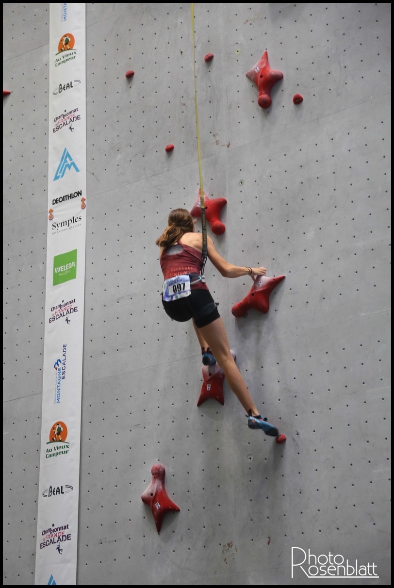 En U18, Louise FONTAINE (Est’Kalad Club) réalise un sans-faute et remporte son premier titre de Championne de France. Avec cette victoire et des temps réguliers sous les 9 secondes, elle est aussi sélectionnée pour les championnats d’Europe jeunes. Chez les garçons, Romain VELPRAT (Montagne Réunion), troisième temps des qualifications garde son rang et remporte la médaille de bronze.