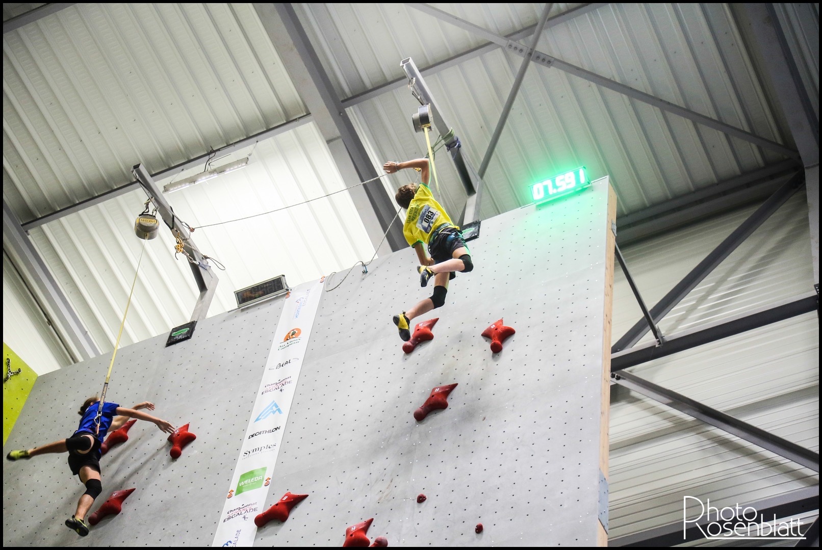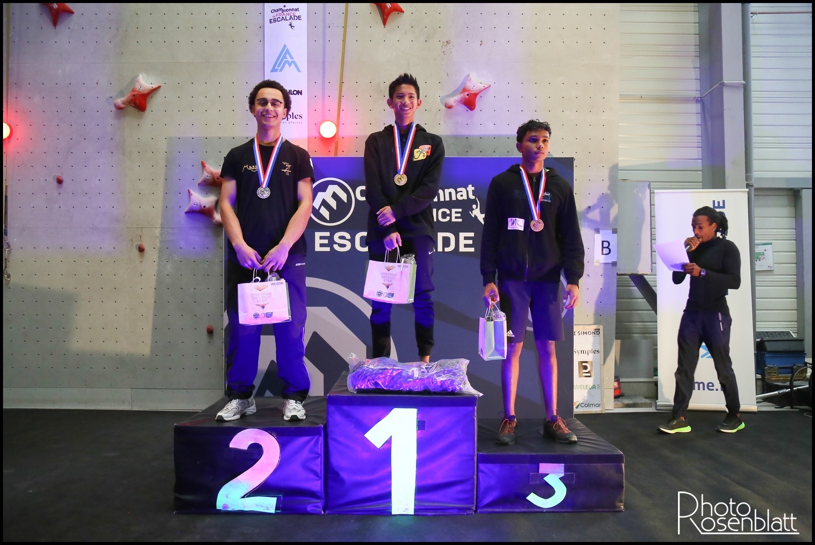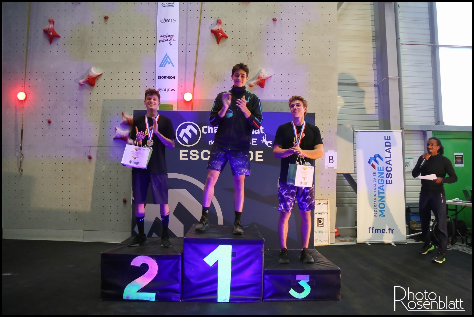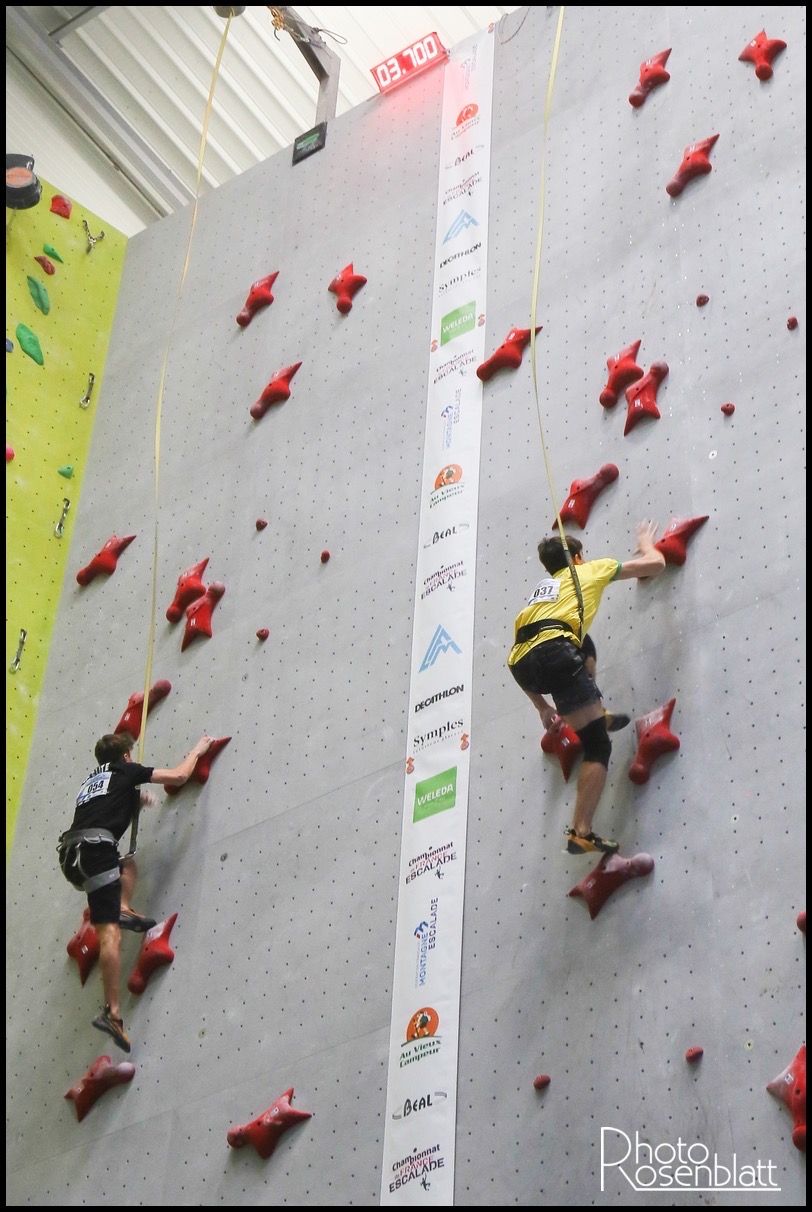 En U16, Eva Lina RYMASZ (Austral Roc) conserve sa couronne en dominant de bout en bout la compétition. Son titre lui ouvre les portes de l’équipe de France pour les prochains Championnat d’Europe jeunes, en Allemagne en juin prochain. Léo GROSSET (Austral Roc) passe les tours un à un et pour affronter en finale le calédonien Timy SIGRIST (Nouméa Escalade), le favori de la catégorie. Au coude à coude jusqu’au dernier mouvement, le duel tourne à l’avantage du réunionnais, qui s’impose avec un nouveau record personnel en 07.59 secondes. Léo monte sur la plus haute marche du podium, pour ses premiers Championnats de France de vitesse et décroche sa première sélection en équipe de France pour les Championnats d’Europe jeunes !