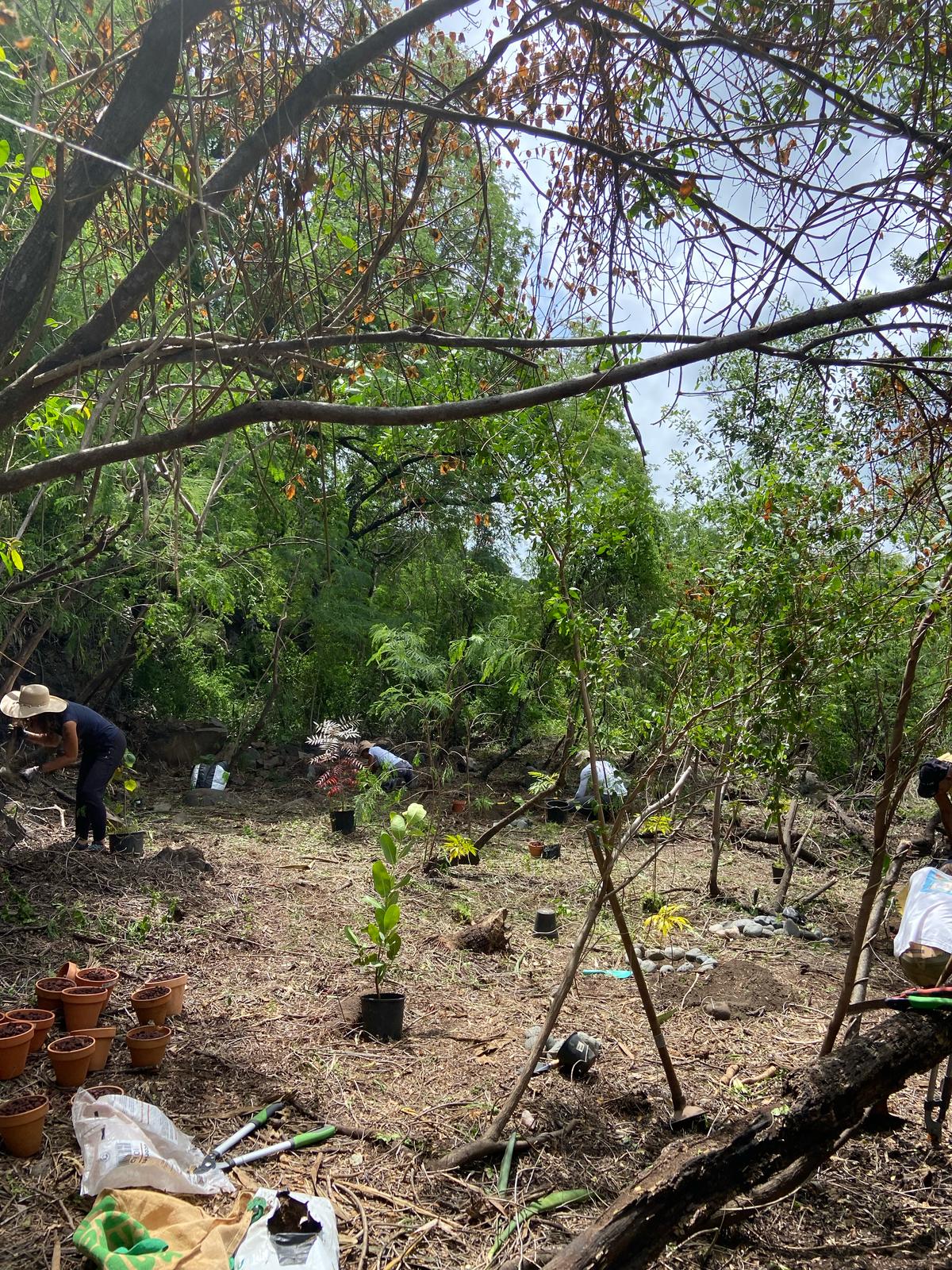 Au programme : défrichage et arrachage des espèces exotiques envahissantes, puis plantation et arrosage d’espèces endémiques.🌳