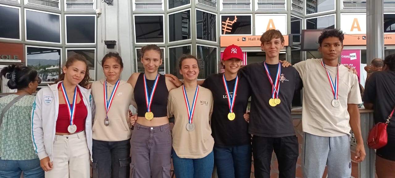 L’escalade réunionnaise fait sensation à Tarbes aux Championnats de France de vitesse Jeunes ce week-end en Occitanie. : 7 médailles pour 7 athlètes engagés, dont 3 titres de Champions de France et quatre titres de vice-champions de France !