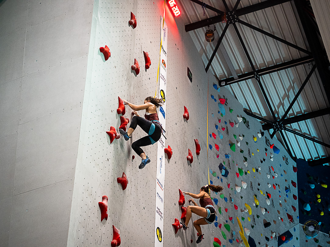 Dès le début de la compétition, Manon LEBON (Austral Roc) frappe fort en remportant les qualifications, et en battant son record personnel coup sur coup (7sec04 et 7sec03 contre 7sec27 auparavant). Elle établit ainsi un nouveau record de France U20 à pointe à quelques centièmes de seconde du record de France sénior. La tamponnaise remporte facilement son duel de quart de finale contre Julia MILTENBERGER avant d’éliminer Lison GAUTRON, autre prétendante olympique. En finale, face à Capucine VIGLIONE la tenante du titre, Manon part très fort et mène largement le duel jusqu’au dernier mouvement. Au moment de conclure son pied glisse dans la poussée finale et elle chute, sans avoir pu taper le buzzer. Capucine profite de cette grosse erreur pour gagner cet ultime duel. Victoire ANDRIER monte sur la troisième marche du podium.