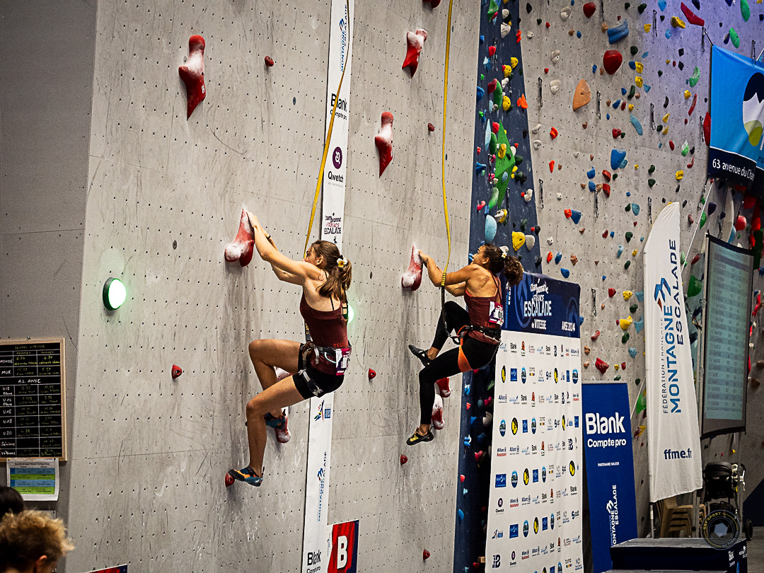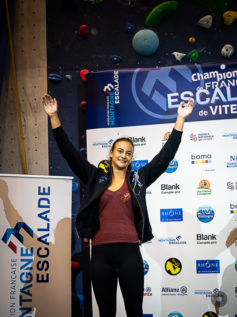 Trois autres athlètes du Pôle Espoir de la Réunion étaient également présentes chez les femmes. Pour leur premier championnat de France de vitesse sénior, elles se sont toutes hissées jusqu’en quart de finale. Louise FONTAINE (Est’Kalad Club), avec un temps de 8sec34 se classe 5e, suivie de Maélane VILLEDIEU (Austral Roc), 6e, qui bat son record personnel en 8sec38 et Eva-Lina RYMASZ (Austral Roc), qui termine 7e de la compétition avec un meilleur chrono de 8sec57.