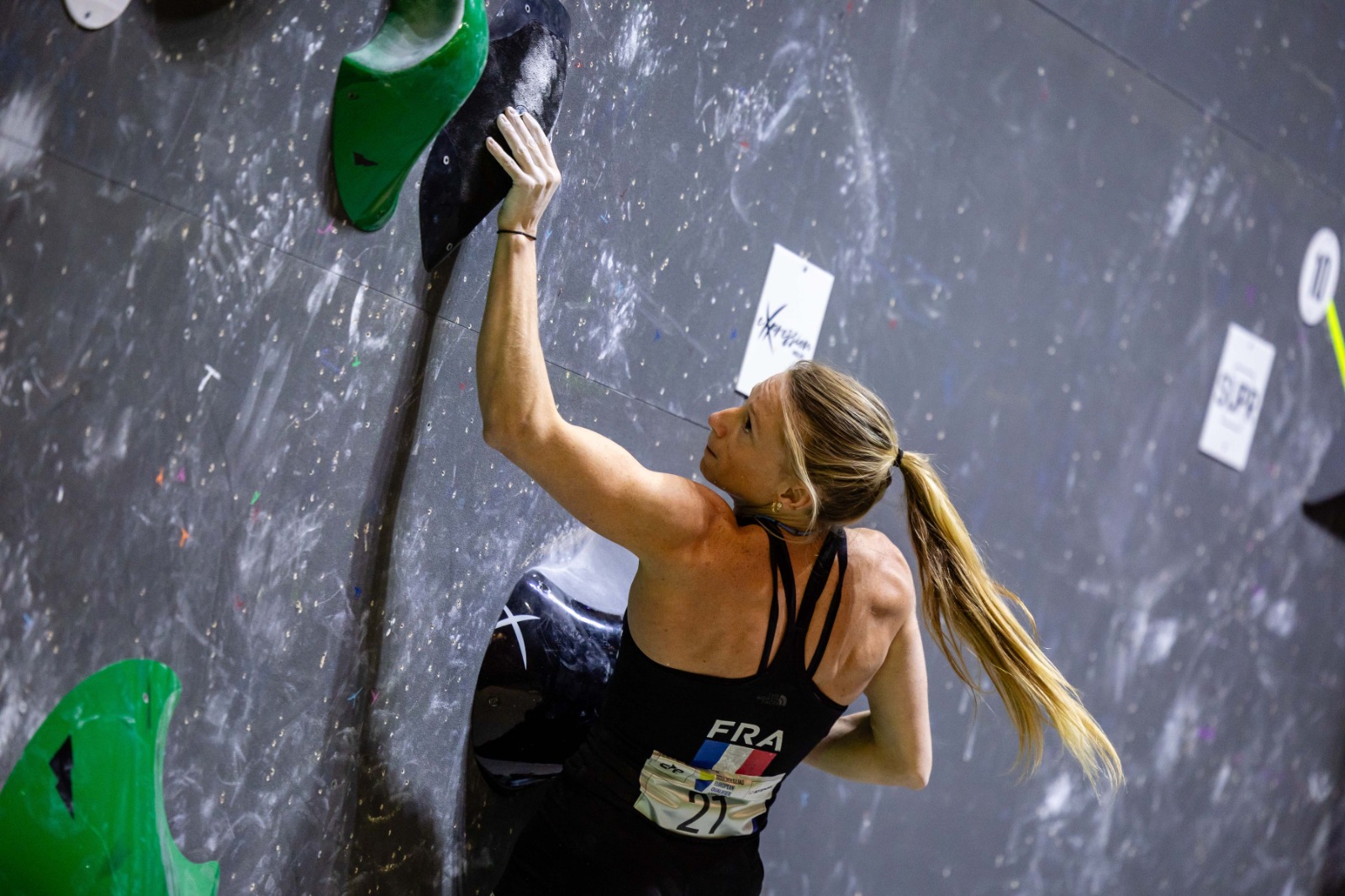 La compétition a débuté de la meilleure des manières pour Oriane BERTONE (7a L’Ouest). En topant les 4 blocs proposés rapidement, la vice-championne du monde de la spécialité prenait la tête du classement provisoire. En difficulté, elle atteint le haut de la voie et remporte ainsi ce tour de qualifications.