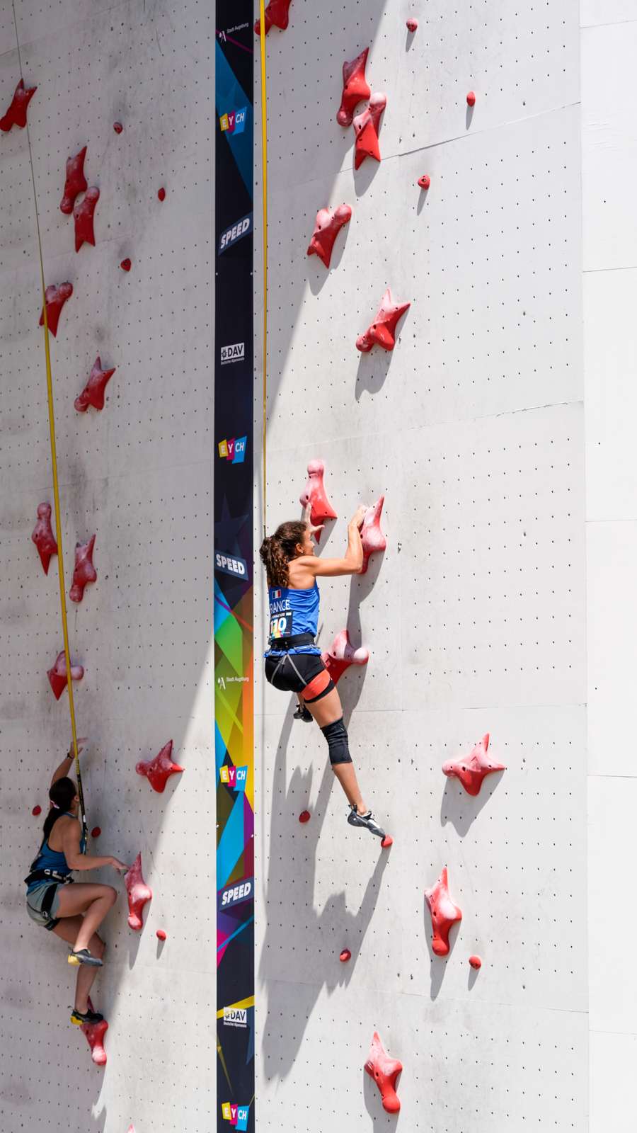 Dimanche, ce sera au tour des spécialistes de vitesse. Pour sa première année en U16, Maélane VILELDIEU de la Team Grimpe Vitesse 974 participera à sa première compétition sous le maillot tricolore. Blessée, Eva Lina RYMASZ ne pourra s’aligner sur l’épreuve. Davantage habitués aux échéances internationales, les titulaires du Pôle Espoir Manon LEBON et Marius PAYET GABORIAUD tenteront d’y décrocher leur premier titre européen en U18.