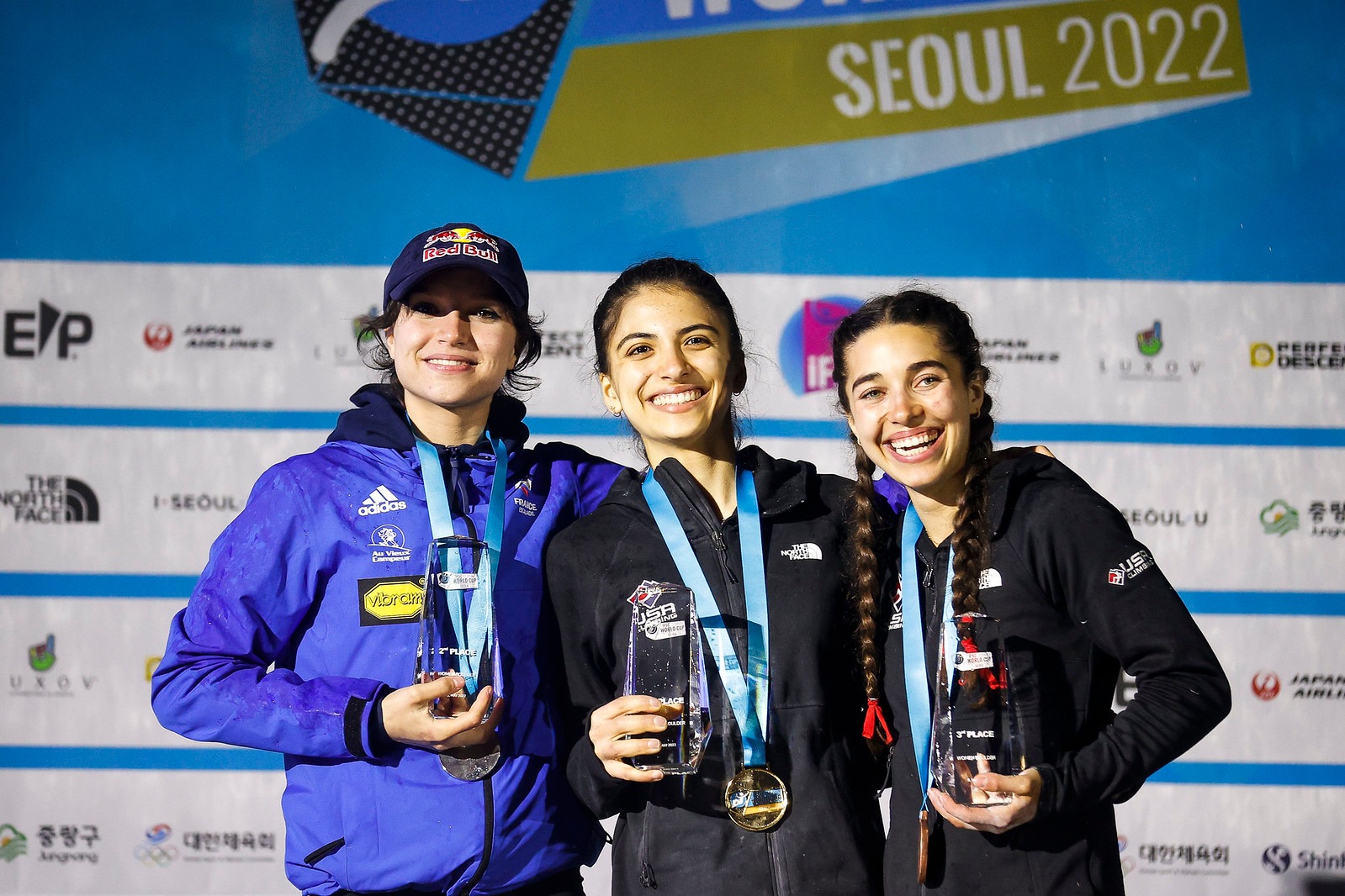 Sur le podium, Oriane est entourée par deux américaines : la championne du monde en titre Natalia GROSSMAN, une nouvelle fois impériale, et Brooke RABOUTOU qui prend la troisième place.