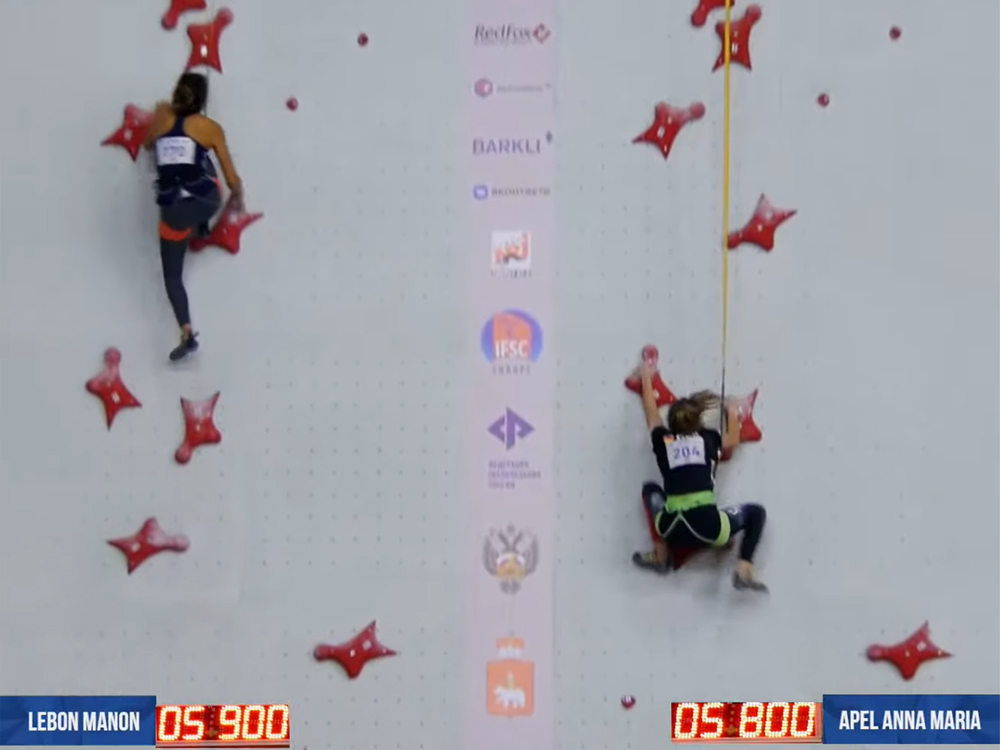 Félicitations à la cadette Manon Lebon (Austral roc et membre du pôle espoir outre-mer), qui prend la 3e place des qualifications U18 avec un run en 8’’74. Sa victoire en 8e de finale et son échec en ½ lui offrent une place pour la petite finale, qu’elle remporte pour décrocher le bronze de ces Championnats d’Europe jeune de vitesse, en signant son meilleur temps sur cette compétition (8’’51).