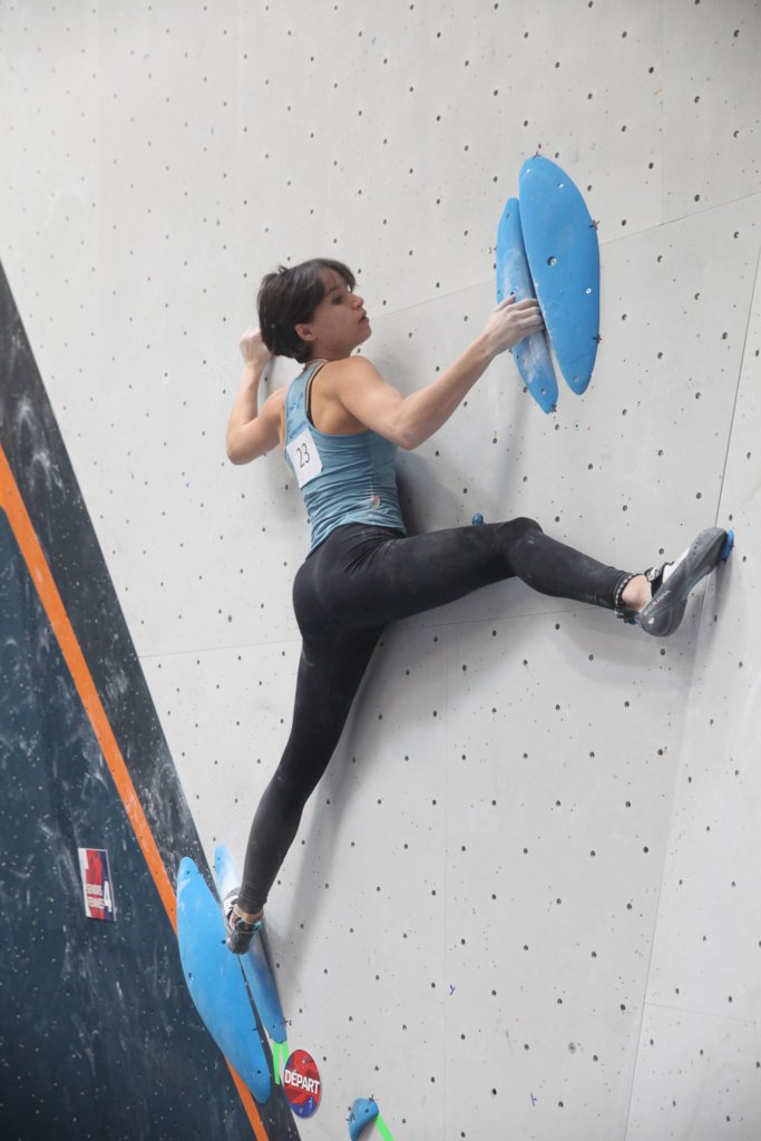 Vendredi soir, après presque 6h d’attente en salle d’isolement la cadette s’élance enfin sur son premier circuit de coupe du monde de bloc senior. La réunionnaise réussit méthodiquement les 5 blocs l’un après l’autre et se propulse à la troisième place du classement provisoire.