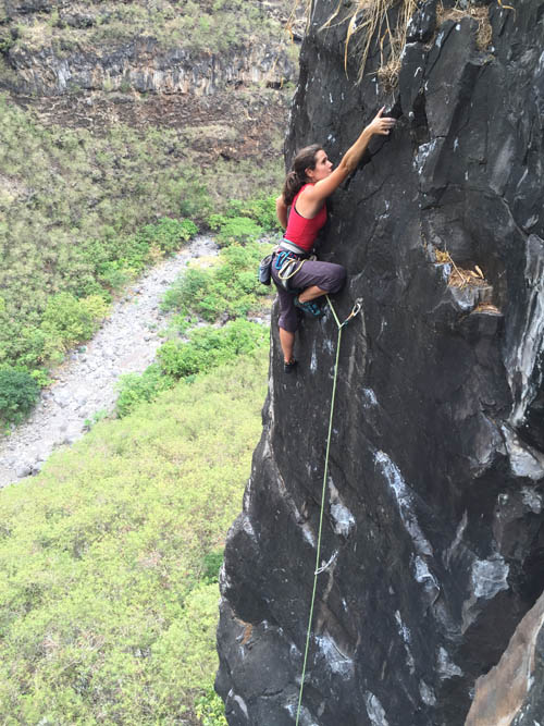 C’est chose faire maintenant (voie qui reste un peu poussiéreuse car nous n’avions pas de balayette, mais grimpable). La partie difficile de la voie est maintenant uniquement sa partie basse, technique. La cotation de l’ensemble ne devrait plus dépasser le 7a, et cette belle ligne devient ainsi bien plus accessible.