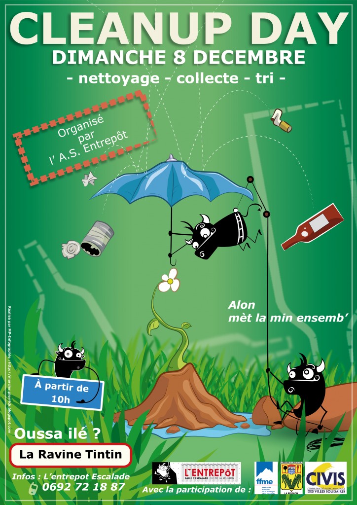 « L’Entrepot organise un Clean up day a la ravine Tintin pour le dimanche 8 décembre ! Avec on l espère la participation de la municipalité de la Petite île, la CIVIS, L’ AS entrepot et de tous ceux sensible au maintien de ce site et le préservation de l’ environnement . Des démarches sollicitant l aide des collectivité sont en cours mais c est surtout les bras dont on aura besoin .