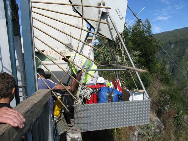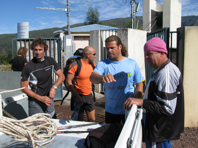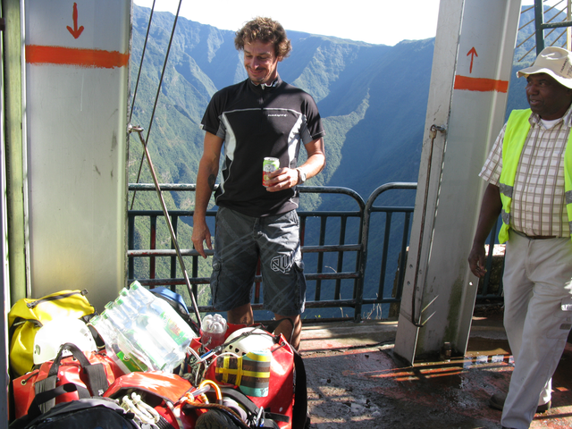 Le week-end suivant, toute l’équipe se retrouve chez la famille Dijoux, qui nous dépose fort gentiment au point de vue de Grand Bassin, histoire de déposer nos sacs sur le monte-charge avant d’entamer les 600m de dénivelé négatif jusqu’au village.