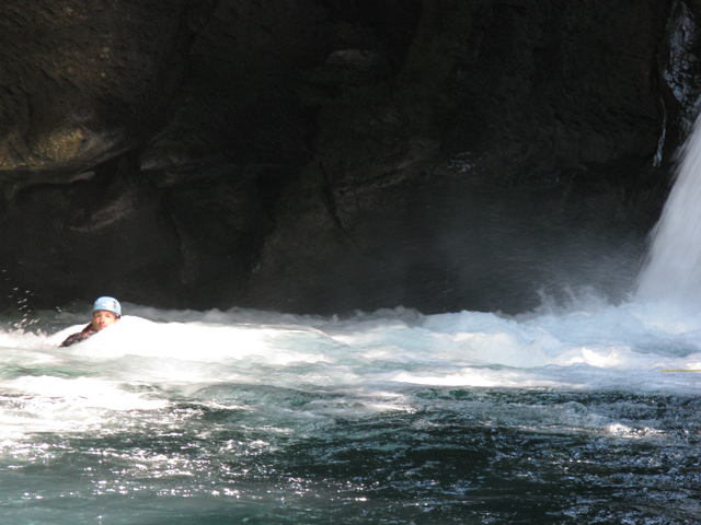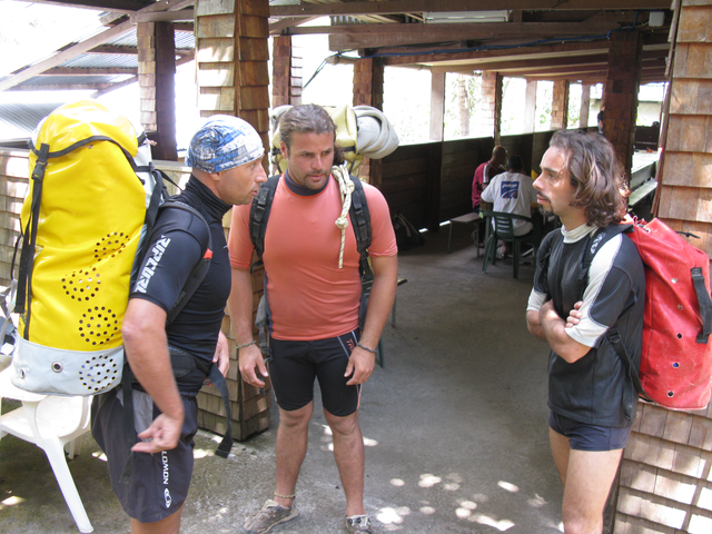 Rebelote le lendemain, cette fois on met l’accent sur la gestion de la sécurité en eau-vive et sur la gestion des sacs. Dans l’après midi, l’équipe quitte à regret cet endroit magnifique, à 17h la famille Dijoux est au rendez-vous et nous reconduit aux voitures.