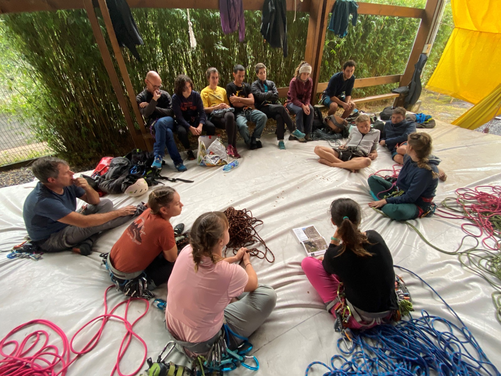 Malgré une météo des plus défavorables, mais avec des stagiaires de haut vol, la troisième formation « Manip’ de grandes voies » proposée par la Ligue s’est bien déroulée !