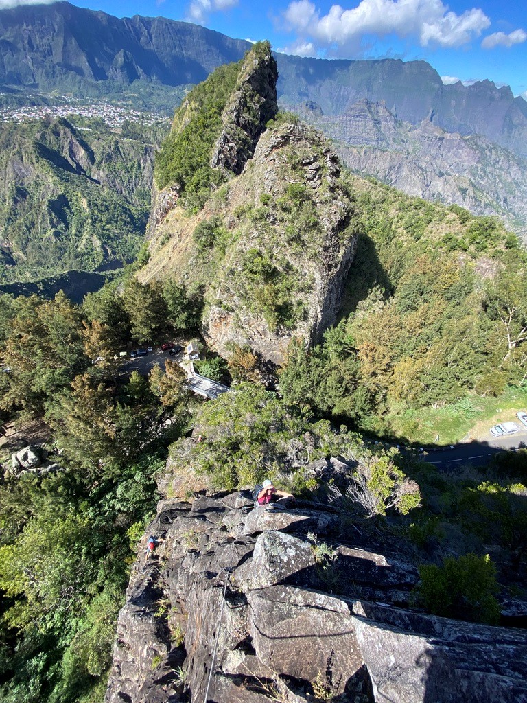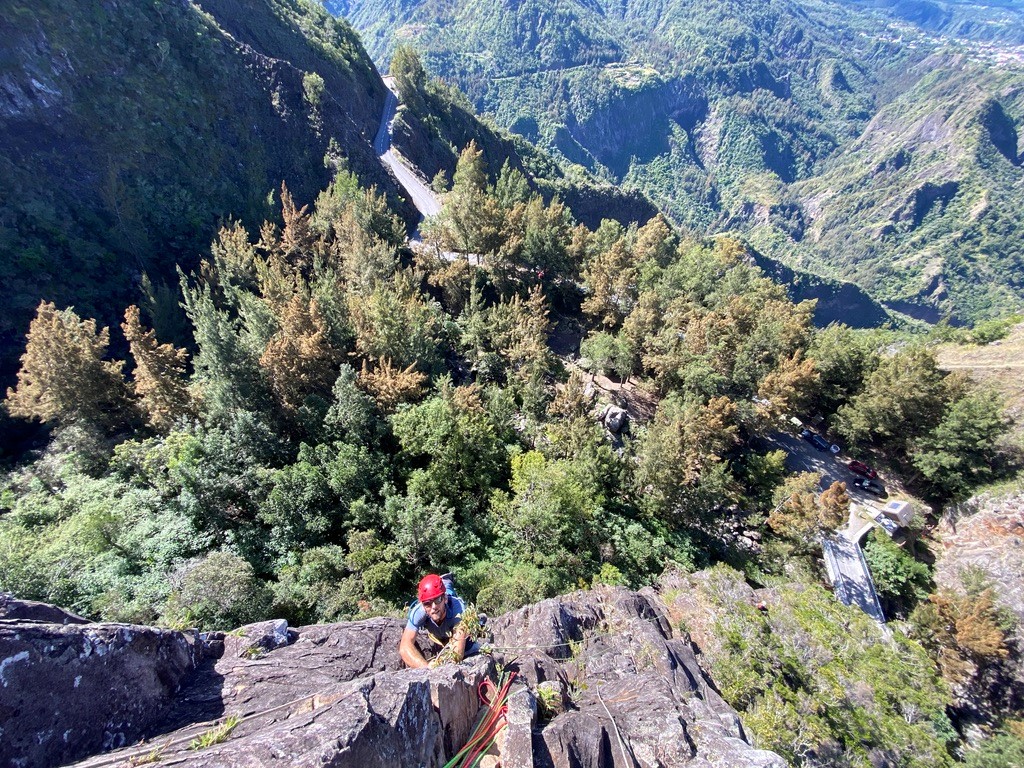 La fin du stage « Manip en falaise » s’est déroulée ce week-end à Cilaos, avec la première grande voie pour les douze stagiaires !