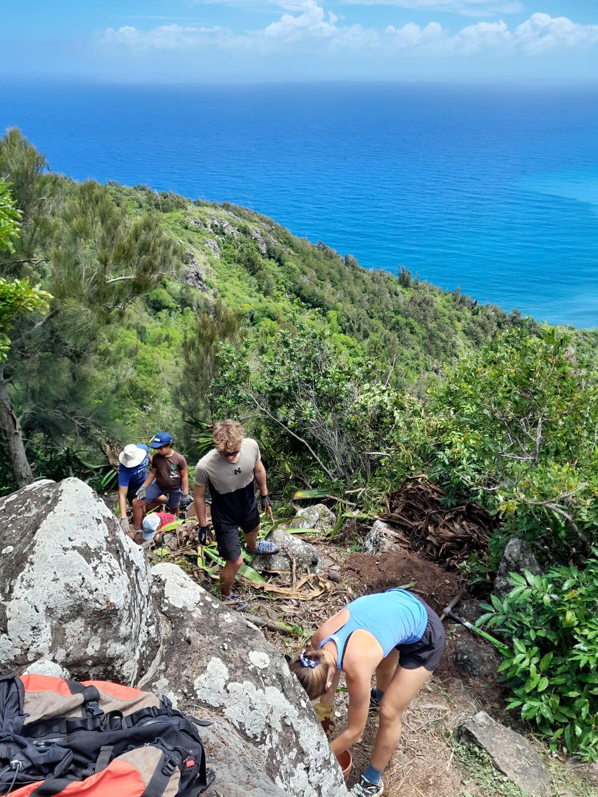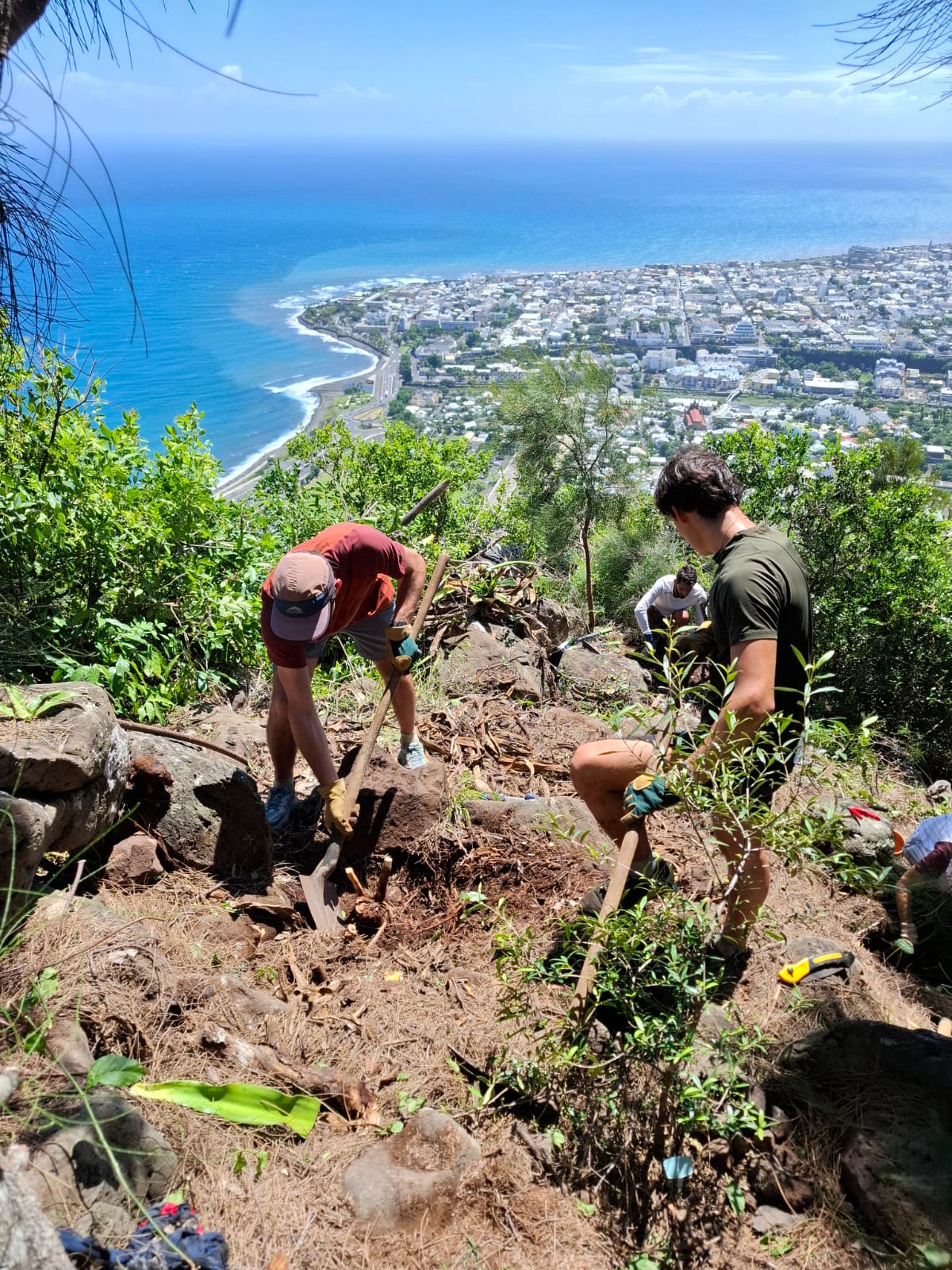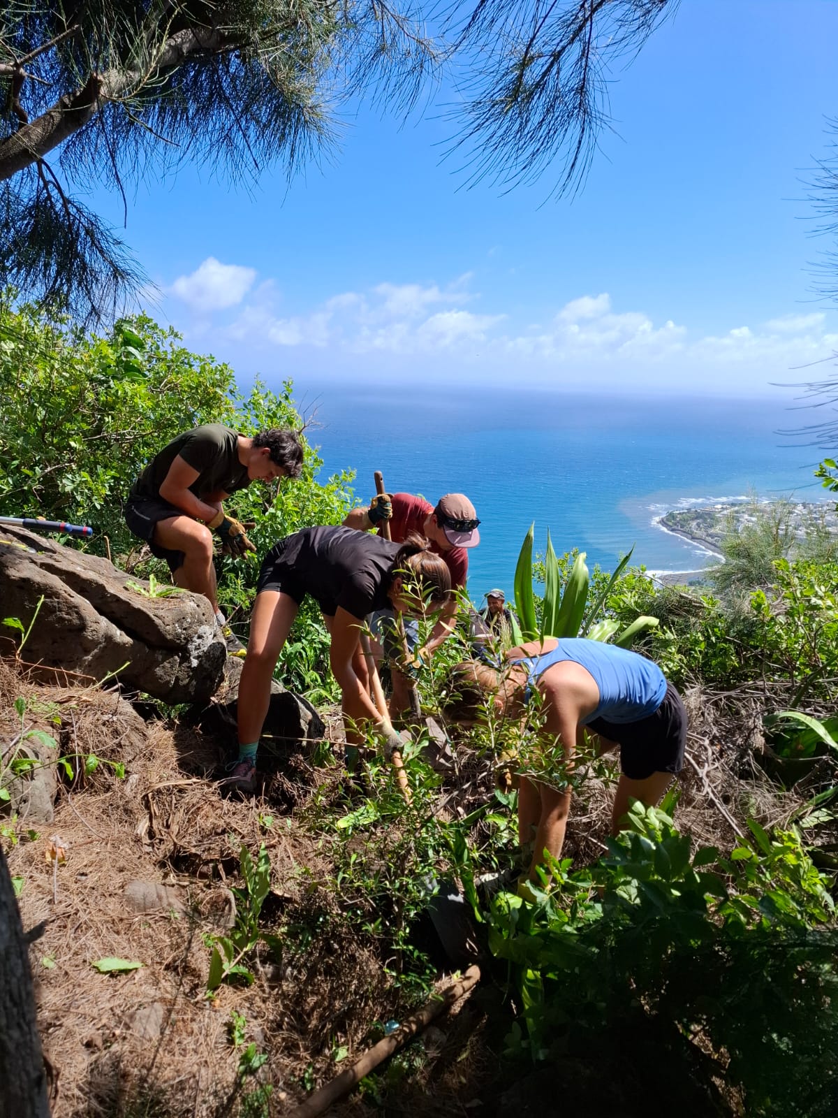 Au programme : défrichage et arrachage des espèces exotiques envahissantes, notamment le choca, afin de redonner de l’espace aux écosystèmes locaux. Ce travail de terrain a ensuite laissé place à la plantation d’espèces endémiques, contribuant concrètement à la restauration du site 🌳🌱