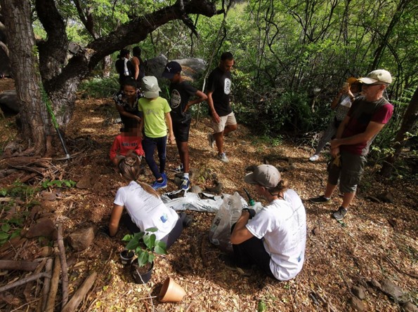 L’objectif de cette nouvelle action, était d’améliorer la biodiversité du site d’escalade des Colimaçons (St-Leu), via l’arrachage d’espèces exotiques envahissantes et la plantation d’un pied symbolique d’Hibiscus de porcher (Thespesia populnea). L’action a été menée aux côtés d’Autisme et Sport, afin d’inclure un public de jeunes autistes, dans la préservation du patrimoine naturel réunionnais. Les enfants comme les parents ont parfaitement joué le jeu. C’est dans une ambiance amusante et chaleureuse que le site a pu être nettoyé.
