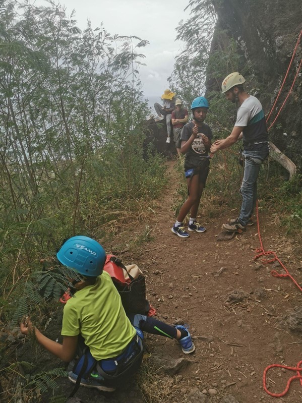 Les 3 volontaire services civiques de la Ligue Réunion FFME (Arthur Lagreze, Hugo Marinx et Julie Rives) se sont associés pour proposer une action de préservation d’un site naturel d’escalade à un jeune public en situation de handicap.