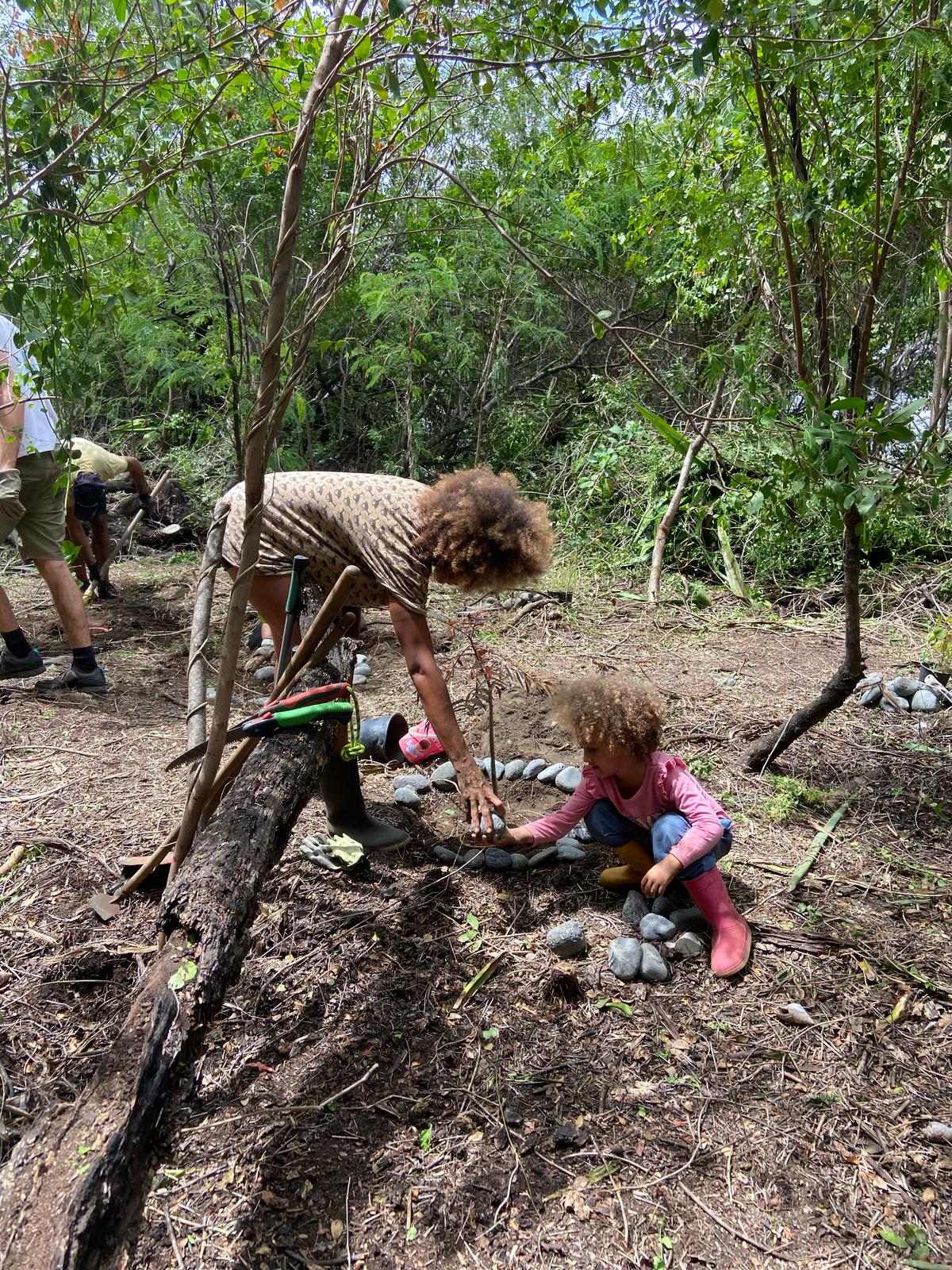 Au programme : défrichage et arrachage des espèces exotiques envahissantes, puis plantation et arrosage d’espèces endémiques.🌳
