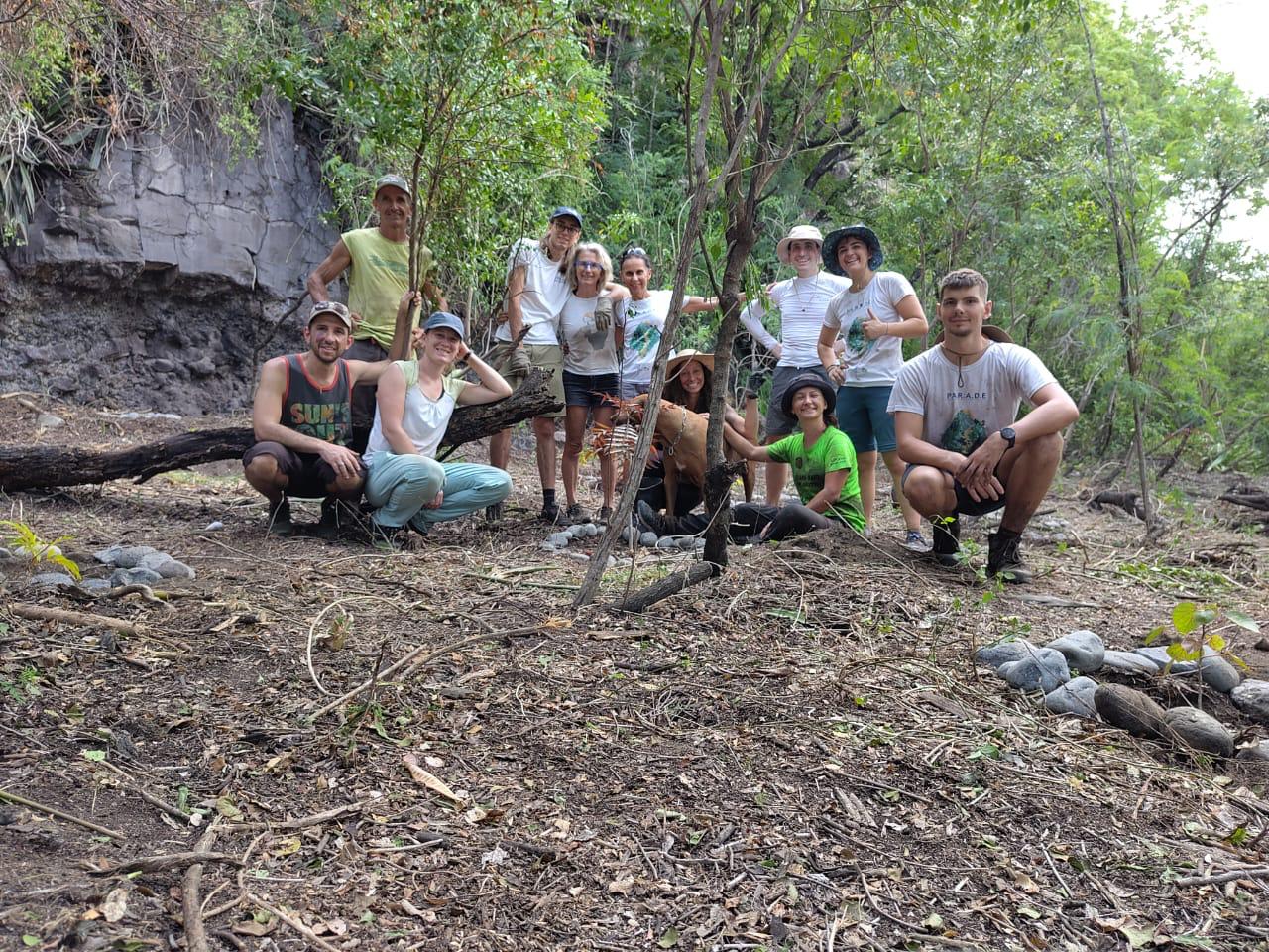 Au programme : défrichage et arrachage des espèces exotiques envahissantes, puis plantation et arrosage d’espèces endémiques.🌳