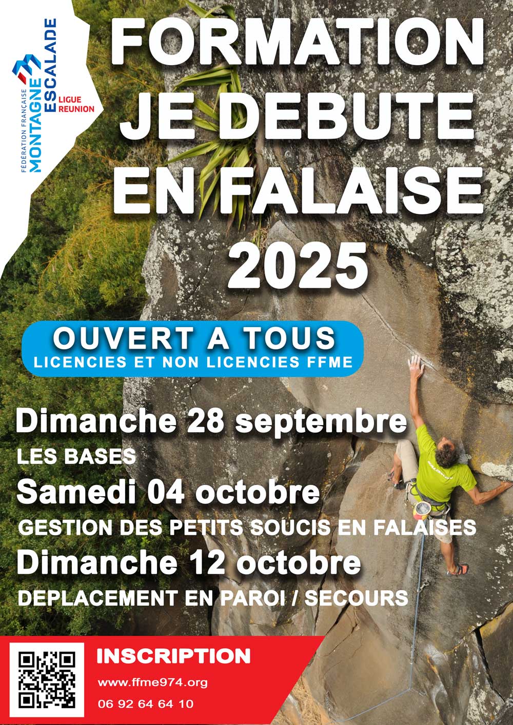 Afin d’optimiser la sécurité pour tous, la Ligue Réunion FFME propose aux licenciés et aux non licenciés FFME, 3 journées de formation aux techniques d’escalade en falaise.
